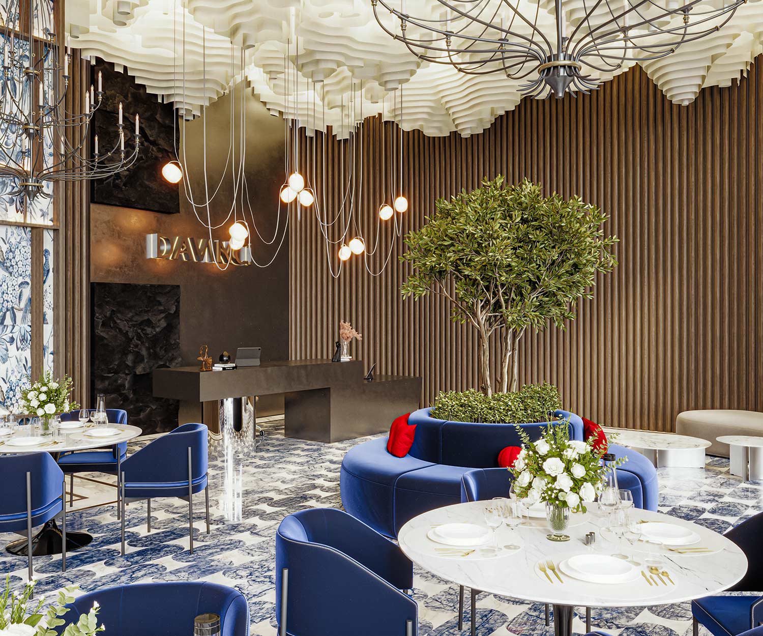 The Da Vinci Restaurant reinterprets the bold spirit of Art Deco through a contemporary lens — a symphony of geometry, color, and light that celebrates artistic expression and modern luxury. Every detail is designed to evoke emotion, where contrast becomes beauty and design becomes theatre.